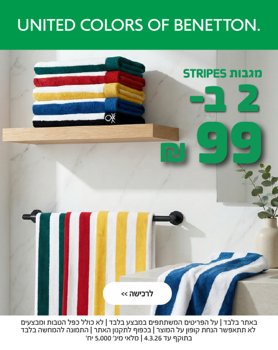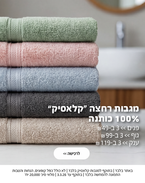 באתר בלבד | על הפריטים המשתתפים במבצע | 50% הנחה ברכישת 2 פריטים ויותר ממגוון המוצרים באתר | 15% הנחה אקסטרה על היתרה | המחיר והנחת האקסטרה מתעדכנים בסל הקניות | לא כולל קטגוריית OUTLET | לא כולל כפל קופונים, הטבות ומבצעים | בכפוף לתקנון האתר | התמונה להמחשה בלבד | בתוקף עד 3.3.26 | מלאי מינימלי 200,000 יח'