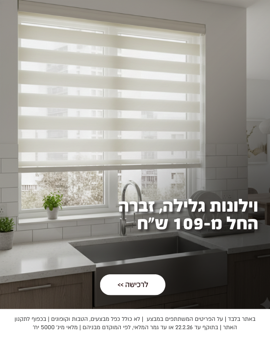 באתר בלבד | על הפריטים המשתתפים במבצע | 10% הנחה נוספת על היתרה, בהקלדת קופון: FINAL | לא כולל אאוטלט | הנחה אפקטיבית 55% | לא כולל כפל קופונים, הטבות ומבצעים | בכפוף לתקנון האתר | תמונה להמחשה | בתוקף עד 22.2.26 | מלאי מינ' 200,000